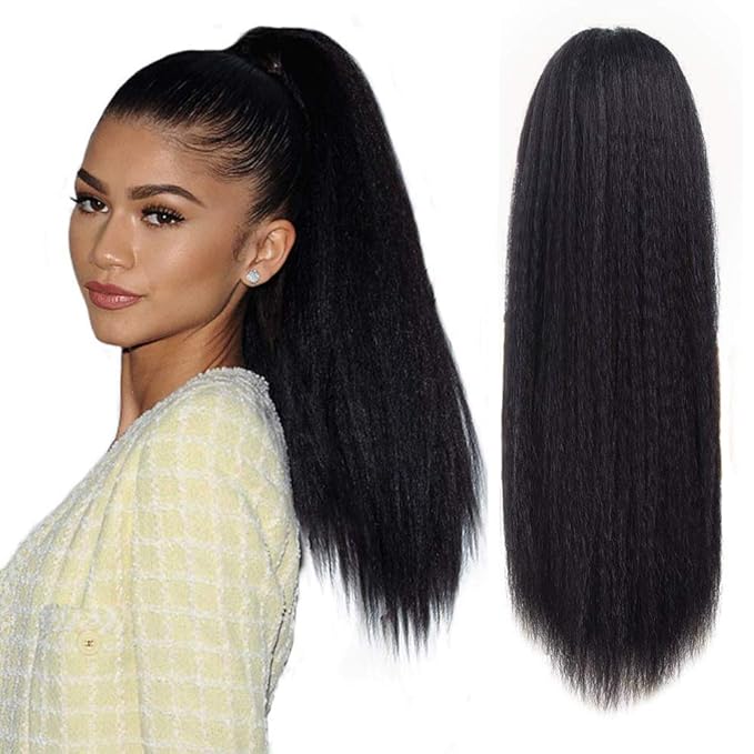 Shedowig ponytail extension wrap around long straight clip in ponytails hair extensions for women 26 inch synthetic hairpiece black.